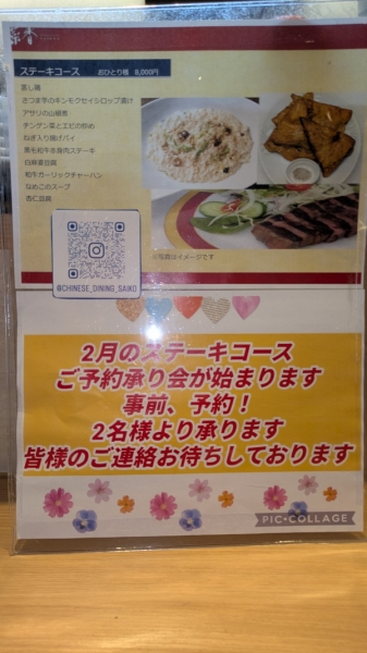 新小岩の中華「チャイニーズダイニング 菜香」のブログ 2月のステーキコース